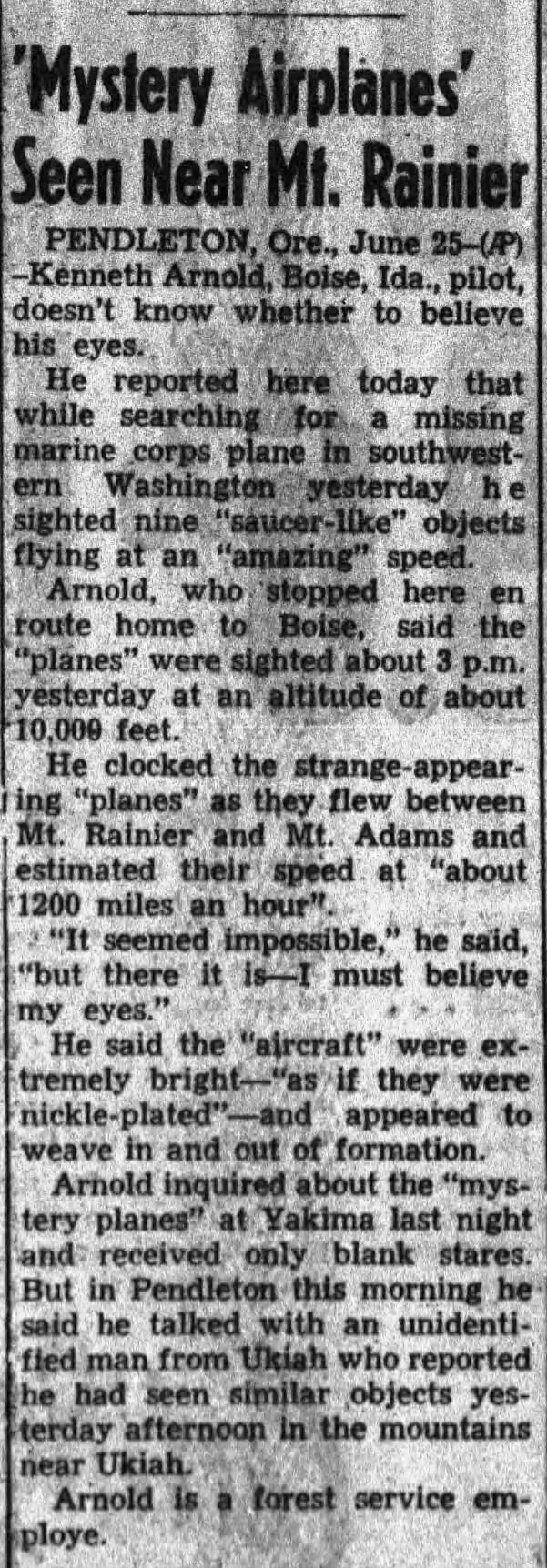 Arnold wasn’t sightseeing he was on the lookout for a missing Marine transport plane rumored to have crashed near Mount Rainier. A reward had been offered, and Arnold knew the mountains well.