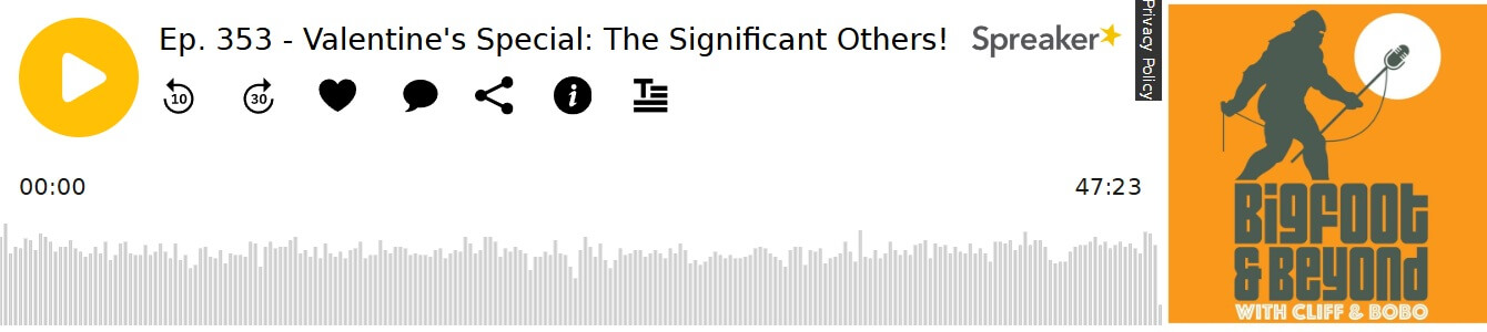 Beyond Bigfoot & Beyond writes “In this special episode from the “Beyond Bigfoot & Beyond” archives, Cliff Barackman, James “Bobo” Fay, and Matt Pruitt welcome their significant others to the podcast to answer questions from the membership! Originally released as a members-only episode in 2024, this conversation with Melissa, Carita, and Emily was the first of an annual Valentine’s Day tradition highlighting the ladies behind the scenes of the podcast!”