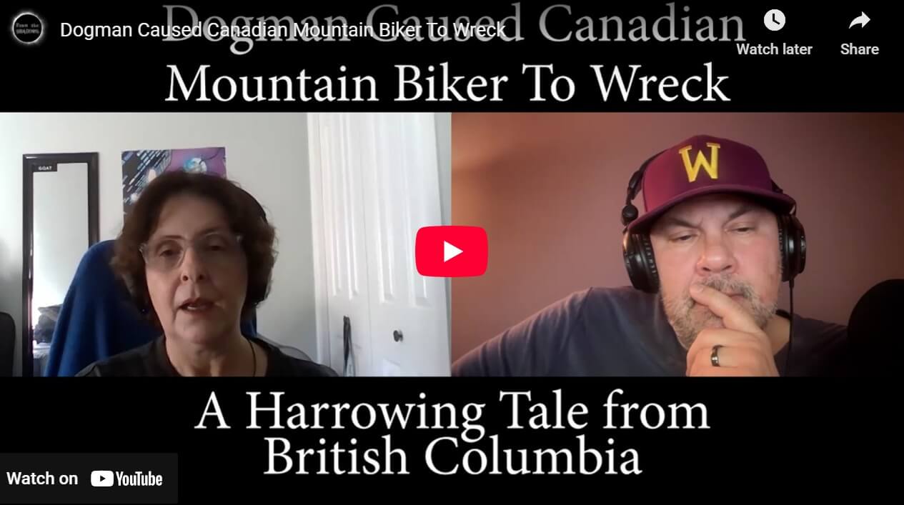 From The Shadows writes “A Dogman type creature suddenly appeared out of nowhere and caused Melanie to wreck her mountain bike. She joins us to share her frightening experience while riding in Kenna Cartwright Park located in Kamloops, British Columbia. The event left her so shaken that she hasn’t returned to the trail since 2018.”