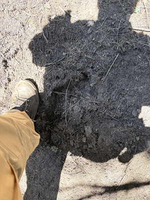 Before we left, we tried to recreate the impressions with our own boots in the same area, but we couldn’t make any noticeable indentations at all.