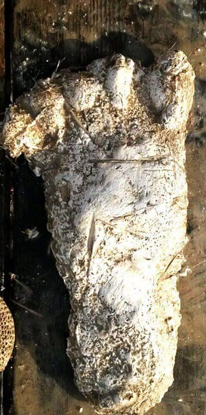 The cast of the footprint as he removed it from the dirt