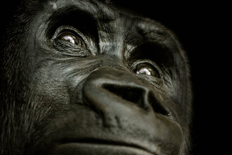 It was about 8 ft. tall covered head to toe with a medium brown hair except the face area which looked similar to a chimp face. It had a widows peak at the hairline and black eyes. Very muscular about 2 ft. thick from back to chest and long arms. At this age I had never heard of bigfoot. It was looking over its left shoulder and looking me directly in the eyes. All of us just froze and looked at it for a few seconds then at the same time we all took off in one direction as it took off in another.