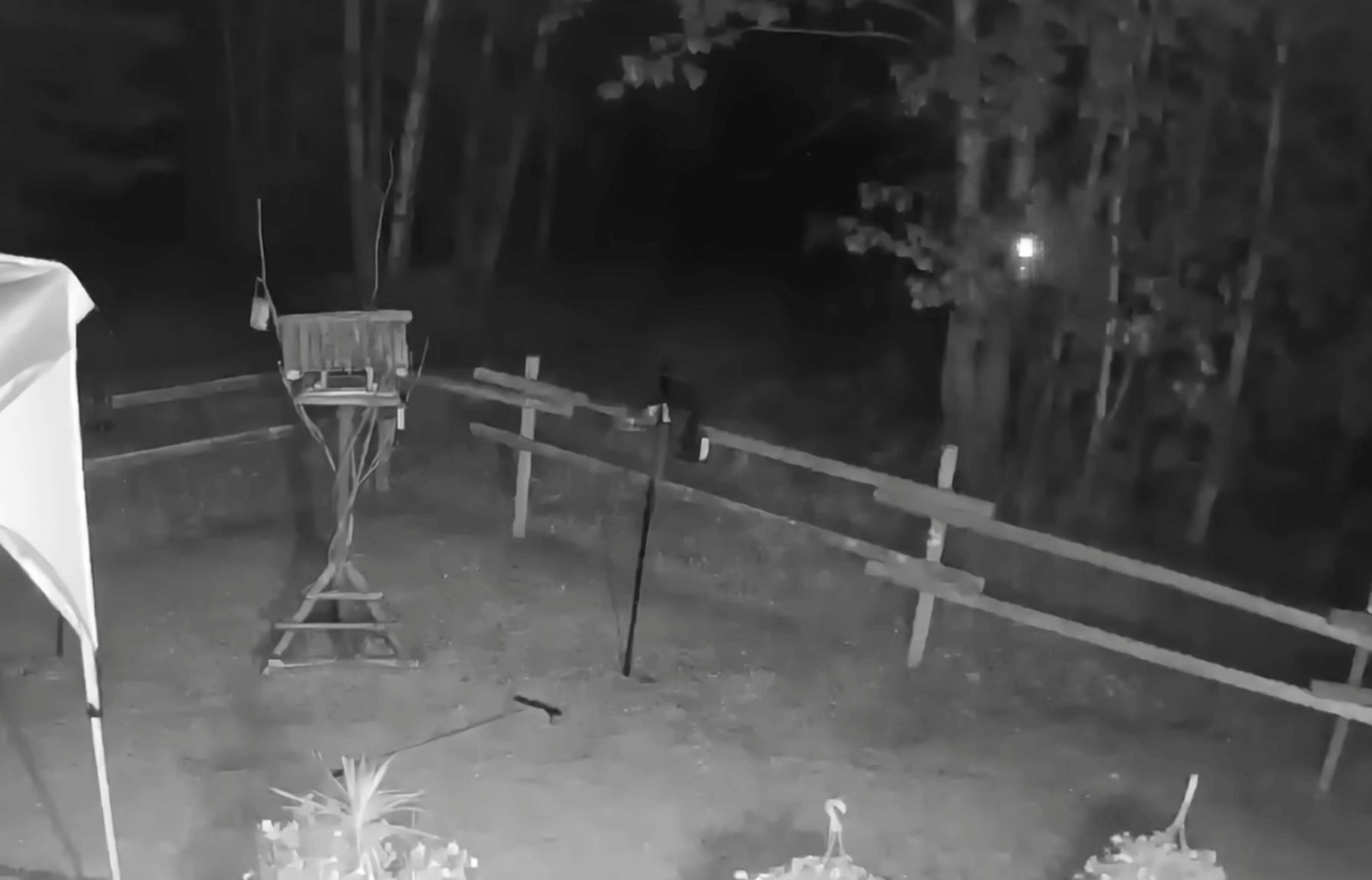 Into The Wild Writes “New owners of rural property experience a strange event recorded on security camera. Property continues to be monitored.” There is a strange flash of light next to the tree, check it out.