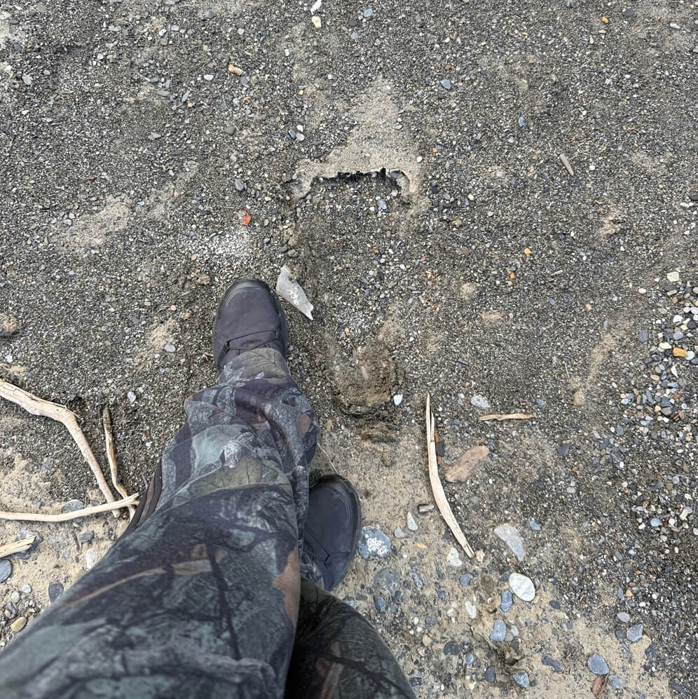 I took a video, which I later lost when I misplaced the SD card, but I did save a screenshot that I still have. Inside the print was a mature beech leaf typically three to five inches long placing the track somewhere between twelve and fifteen inches in length.