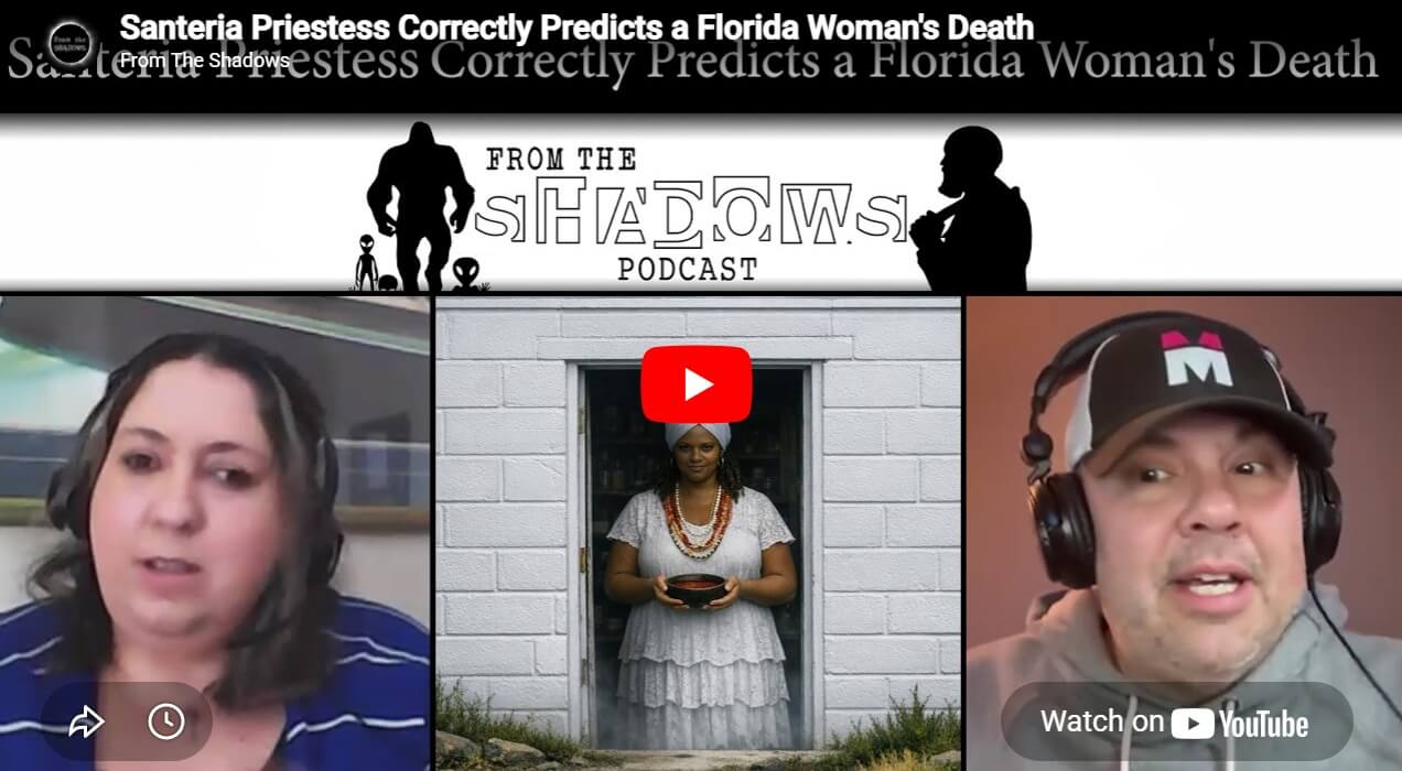 From The Shadows writes “A Santeria Priestess predicted a Florida woman’s death long before the woman had a near death experience. Marissa joins us to share a harrowing time she had as a younger woman when she was in the presence of a Santeria Priestess who warned her about her death.