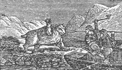 The animal found satisfaction in tipping over newly stacked woodpiles, throwing rocks in hayfields and poking logs into bear traps. The earliest written report of Slipperyskin came from a man named Duluth, who passed through the then unsettled country in 1759. He wrote in his journal that as they made their way, they “were ever being annoid, for naught reason, by a large black bear…who would throw large pinecones and nuts down upon us from trees and ledges, the Indians being also disgusted, and knowe him, and call him Wejuk or Wet Skine.” Into the 1800’s he was still harassing the towns and villages as they were growing in population. Many hunting parties were organized, but always came up fruitless. Eventually, Slipperyskin disappeared entirely, with no one knowing where it came from or exactly what it was.