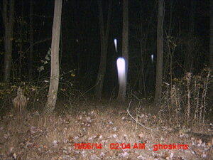 Log in to ReplyYes the white silhouette looks to me between the trees and the tent. If you enlarge the photo you can clearly see something. Sorry I was fishin just saw that someone wanted to know what I thought was scary. I am big ol chicken though. Lol