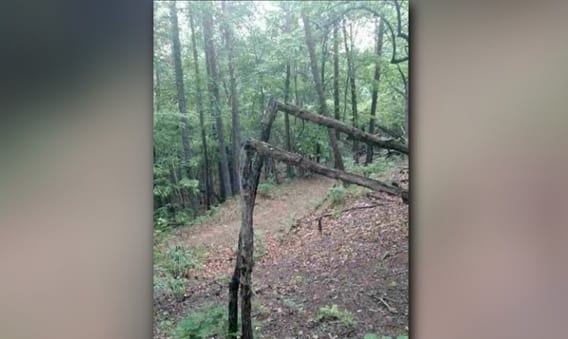 “Trees break off about eight or nine feet above the ground, just folded over,” John said. “The theory is this points to something. Other tree structures are just kind of laying in a tee-pee like pattern but they’re interwoven.”