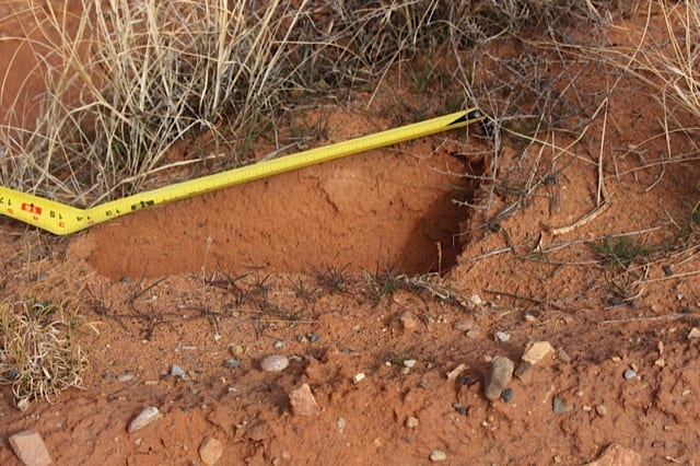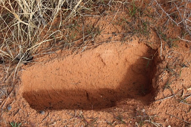 looks like someone took a boulder out the ground, no grass matter where there should be.